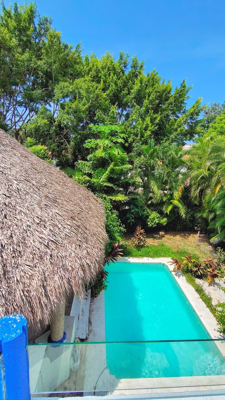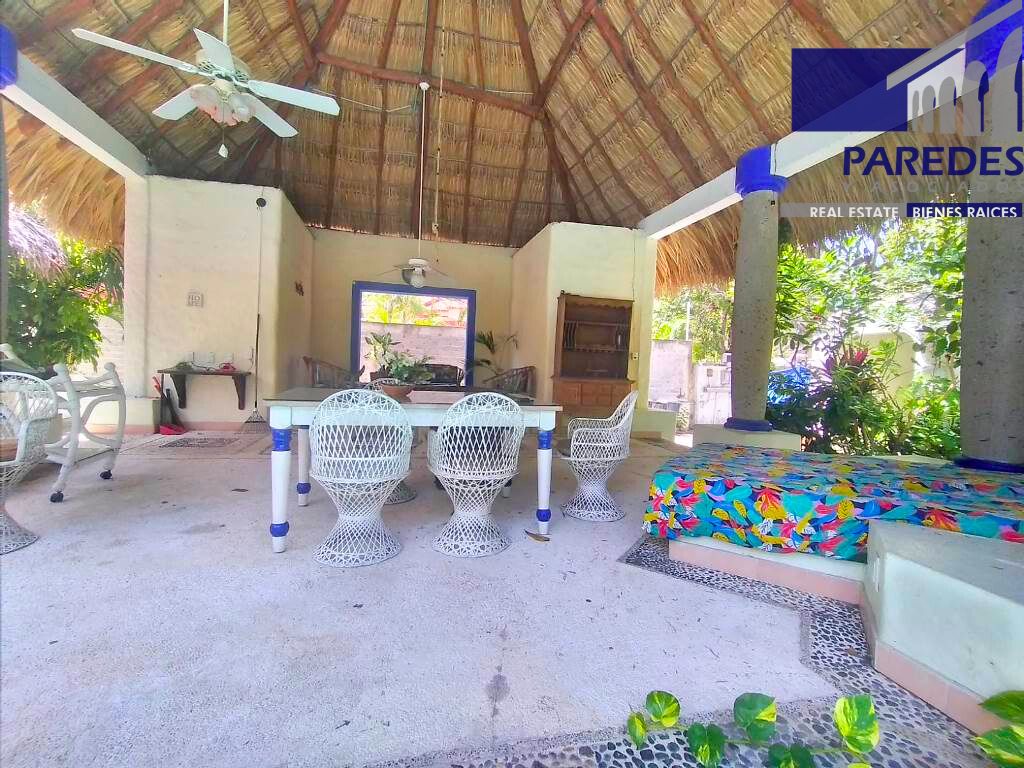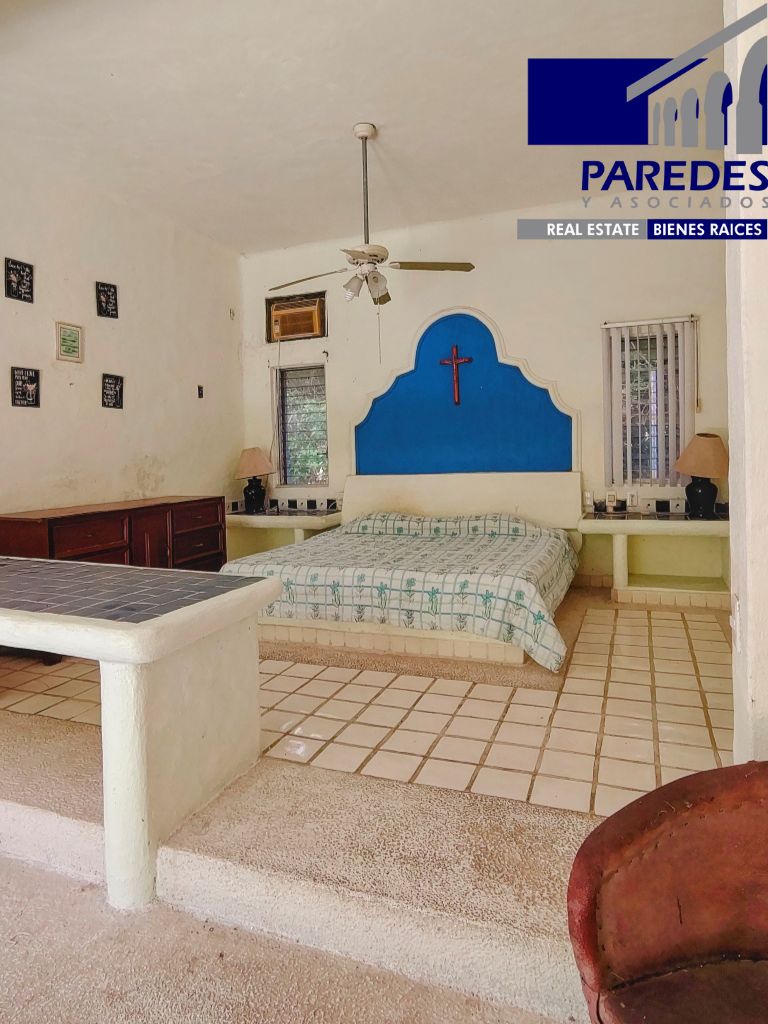 OBSERVACIONES: Las 2 recamaras en planta baja se comunica y se independizan por medio de una puerta. La cocina y recamaras tiene acceso al área de palapa y alberca. Cuenta con Cisterna y 3 tinacos.