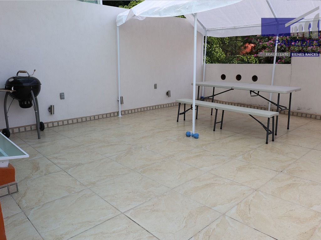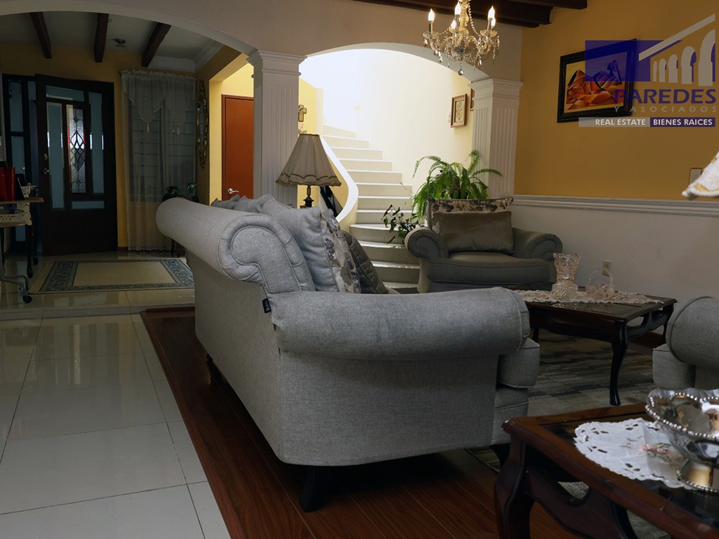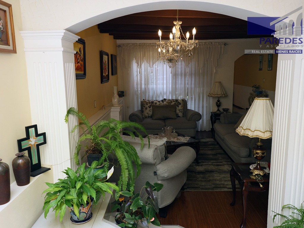 PLANTA BAJA: Cochera para 2 autos, ½ baño, sala, jardín, comedor, cocina, jardín trasero, área de servicio.